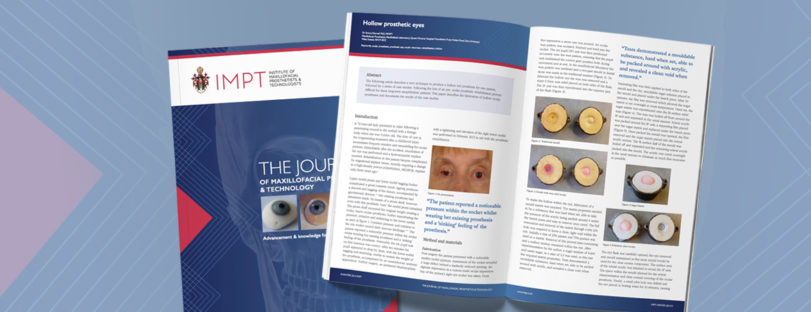 In order for the Institute of Maxillofacial Prosthetists and Technologists (IMPT) to ensure maximum dissemination and copyright protection of material published in the journal copyright must be explicitly transferred from the author to the IMPT.